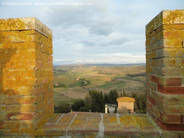 „Einst war das alles hier im Besitz des Prinzen Corsini – 12.000 Hektar Land“ erklärt uns Claudio, Gärtner, Hausmeister und Mädchen für alles auf der Burganlage – und heute auch spontan unser Touristenführer. Wir stehen auf dem Wachturm der Anlage und Claudio deutet Richtung Horizont, um zu verdeutlichen, bis wohin genau der Corsini-Besitz einst reichte. Das Zuhören fällt uns schwer, weil wir zu sehr mit Fotografieren und Panorama-Genießen beschäftigt sind. Wir bekommen aber mit, dass dem Prinzen durch die Enteignung nach dem Zweiten Weltkrieg nur noch lächerliche 3.000 Hektar geblieben sind.