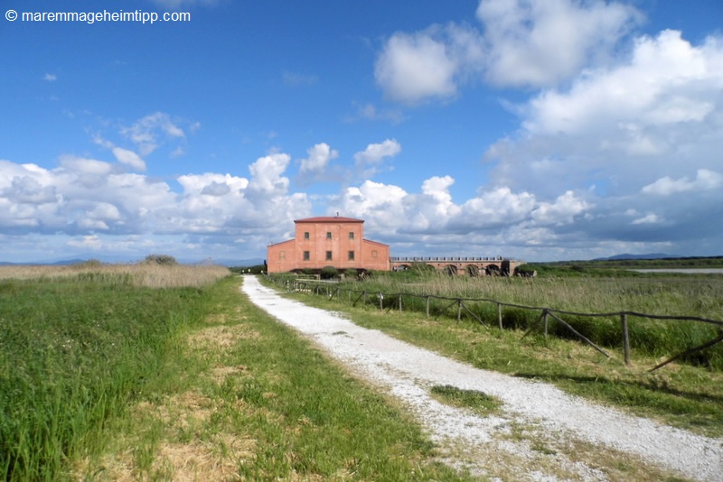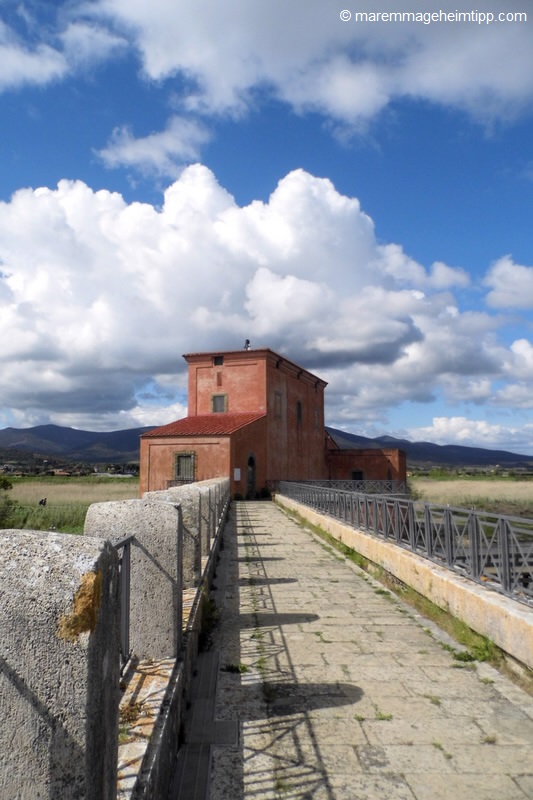 Wenn man auf der Burg steht und den Blick übers Meer bis zur Insel Giglio und dem Monte Argentario genießt, braucht man den Kopf nur ein wenig nach links zu drehen, um einen Zeugen der sumpfigen Vergangenheit Castigliones zu sehen: das „Casa Rossa Ximenes“, ein (wie der Name schon sagt) rotes Haus, das gebaut wurde, um von dort aus den Ablauf des Sumpfwassers zu steuern – einer von vielen Versuchen im Laufe der Geschichte, die Landschaft trockenzulegen. Die ersten machten bereits die Etrusker; damals war das Gebiet allerdings noch von einem riesigen Salzsee, dem „Lago Prile“ bedeckt. Im 18. Jahrhundert zu Zeiten des Großherzogtums Toskana wurde der Ingenieur und Namensgeber des „Casa Rossa“ Leonardo Ximenes mit der Urbarmachung der Gegend betraut. Doch die Arbeiten stockten immer wieder und die Natur gewann wieder die Oberhand. Auch unter Mussolini wurden Kultivierungsversuche gestartet, die aber erst Mitte des letzten Jahrhunderts erfolgreich beendet wurden.